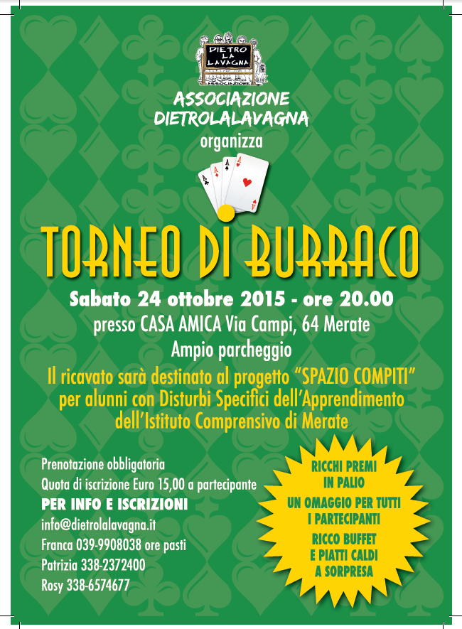 Il 24 ottobre 2015 ore 20:00 abbiamo organizzato un torneo di Burraco, per noi il secondo!